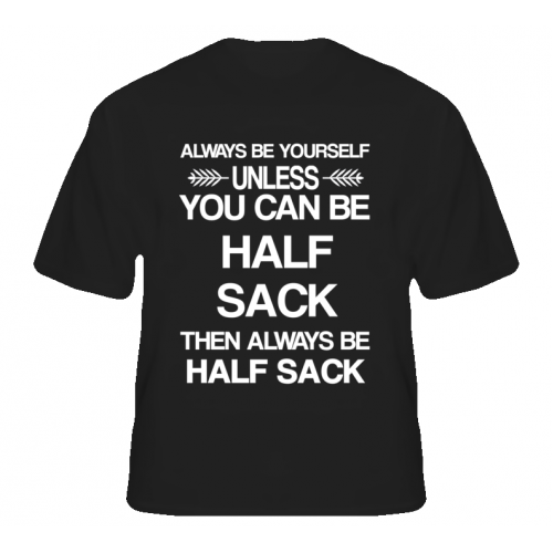 Half Sack Sons Of Anarchy Be Yourself Tv Characters T Shirt. This cool, essential t-shirt is available in many styles and colors including mens, womens and kids. The graphic is printed on a quality, preshrunk cotton shirt you will love, satisfaction guaranteed. This tee is sure to be a favorite!