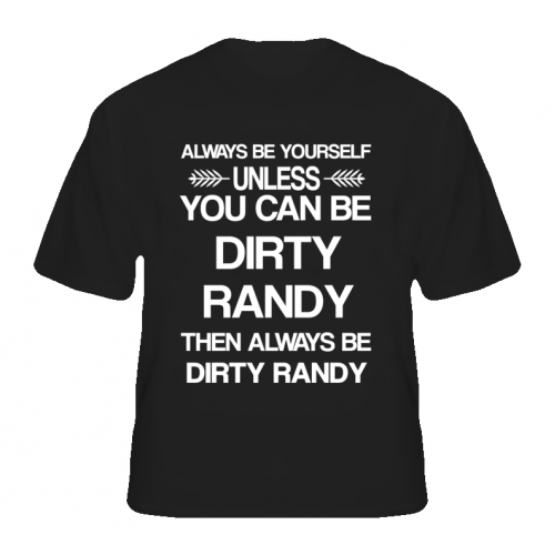 Dirty Randy The League Be Yourself Tv Characters T Shirt. This cool, essential t-shirt is available in many styles and colors including mens, womens and kids. The graphic is printed on a quality, preshrunk cotton shirt you will love, satisfaction guaranteed. This tee is sure to be a favorite!