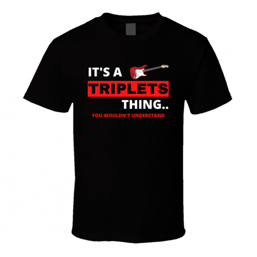 Triplets Thing Electric Guitar Player Rocker Fan Cool Gift T Shirt. This cool, essential t-shirt is available in many styles and colors including mens, womens and kids. The graphic is printed on a quality, preshrunk cotton shirt you will love, satisfaction guaranteed. This tee is sure to be a favorite!
