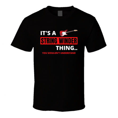 String Winder Thing Electric Guitar Player Rocker Fan Cool Gift T Shirt. This cool, essential t-shirt is available in many styles and colors including mens, womens and kids. The graphic is printed on a quality, preshrunk cotton shirt you will love, satisfaction guaranteed. This tee is sure to be a favorite!