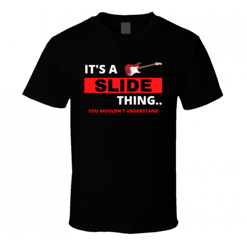 Slide Thing Electric Guitar Player Rocker Fan Cool Gift T Shirt. This cool, essential t-shirt is available in many styles and colors including mens, womens and kids. The graphic is printed on a quality, preshrunk cotton shirt you will love, satisfaction guaranteed. This tee is sure to be a favorite!